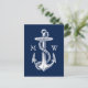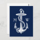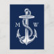 Un ancla blanca antigua hermosa con la cuerda sobre fondo de los azules marinos. Personalizar con las sus iniciales o el otro texto. El fondo es reemplazable tan no dude en substituir por su propia foto o modelo preferida de la playa. Para todos que aman el océano, la navegación, la arena y el mar.