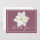 Magnífica fotografía que muestra un corte en primer plano de una hermosa flor blanca clematis contrastada con un fondo de color ciruela. Esta postal se ofrece en una serie de colores de fondo diferentes. El crisantemo cubre la parte delantera de esta tarjeta de nota floral en blanco que se puede usar como tarjeta de agradecimiento, tarjeta de cumpleaños o cualquier otra tarjeta de su elección. ¡personalizar con tu texto y/o fotos para convertirlo en una especie!