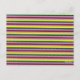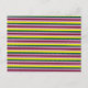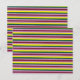 El diseño presenta un patrón formado por rayas horizontales de varios colores, como amarillo, verde, púrpura y rosa. Entre estas franjas de colores hay rayas blancas más delgadas. Cada franja de color está adornada con una secuencia de pequeños puntos que se separan uniformemente a lo largo de la franja. Los puntos aparecen en colores contrastantes a la franja en la que están, como puntos blancos sobre las rayas moradas y verdes y puntos negros sobre las rayas amarillas y rosas. Este patrón repetitivo crea una textura visualmente estimulante que se podría usar para fondos, textiles u otros elementos de diseño debido a sus colores vibrantes y secuencias rítmicas de punto.