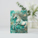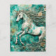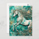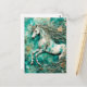 Postal Fondo Verde azulado mágico de Unicornio blanco