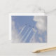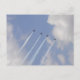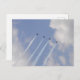 Un escuadrón de jets militares realiza sus maniobras entre las nubes de estímulo sobre un espectáculo aéreo de verano.