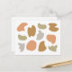 Postal de formas abstractas modernas. Las formas son naranja quemado, verde oliva, rosa y gris.
