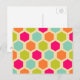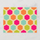 Patrón de repetición con formas hexágonas en muchos colores vintage diferentes sobre un fondo crema. Los colores son rosa, azul, naranja y verde.