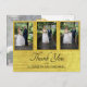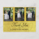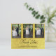Elegantes Anillos De Oro Gracias Postcard. La tipografía está en un tipo de letra moderno Todo el texto se modifica fácilmente para añadir su propia información. Añade tus propias fotos. En el reverso se muestra una foto que se desvanece para que se pueda agregar su propio mensaje personalizado. Tu foto también aparecerá descolorida. Esta tarjeta de agradecimiento al personalizado está sola, aunque forma parte de una suite de bodas estacionaria de los finos diseños de Chessie.
