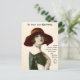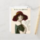 Tarjeta de felicitación de cumpleaños antigua. Mujer joven con sombrero y vestido de moda antigua. "Para felicitar tu cumpleaños" en la parte superior en tipografía victoriana. "Todos los deseos más dulces que puedo recordar; Aquí para felicitar tu cumpleaños con mi amor, encontrarás"