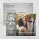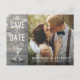 Guardar las plantillas de postales de fotos de la invitación a la boda de la fecha - Elegante guión de letras, Vintage Champagne Glasses y String Lights sobre fondo rústico de madera. ¡Un Diseño Perfecto Para Tu Gran Día! Todos Los Estilo De Texto, Los Colores Y Los Tamaños Se Pueden Modificar Para Ajustarse A Sus Necesidades.