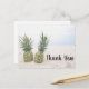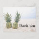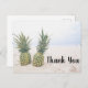 Gracias postal con una fotografía que muestra un par de piñas sentadas en una playa de arena.