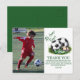 Envía un mensaje o agradecimiento deportivo con esta tarjeta postal temática de fútbol de color verde y azul marino. Con una vibrante pelota de fútbol de acuarela y un diseño audaz, es perfecta para los fanáticos del fútbol de todas las edades. Ya sea para agradecimientos de fiesta o simplemente una nota divertida, esta tarjeta postal personalizada aporta un toque personal a cada mensaje. ¡Ideal para niños y niñas que aman el juego!