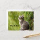 Postal Foto de adorable gatito gris mirando hacia arriba