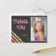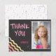 Tarjeta postal de agradecimiento de cumpleaños en pizarra colorida para niñas. Tarjeta de agradecimiento de cumpleaños linda con una foto y nota de agradecimiento para tus amigos y familiares. Sube tu foto y personaliza la tarjeta con el nombre de tu hijo. La tarjeta tiene estrellas y olas coloridas en la parte delantera y la parte trasera sobre fondo gris oscuro. Ideal como tarjeta de agradecimiento para niñas.