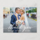 Tarjeta postal de agradecimiento de foto de boda de novia y novio con caligrafía moderna - Script blanco