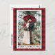 Postal Foto de boda de Navidad alegre con cuadros rojos d
