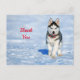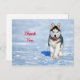 Postal Foto de cachorro de Husky en la nieve Gracias