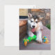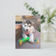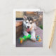 Ahorre en franqueo y sobre/papel cuando envíes esta adorable fotografía de primer plano de un cachorro de Malamute con una cuerda colorida y juguete para morder en la portada de esta postal. ©Patricia AZ Phillips. ¡Haga clic en Personalizar! para agregar texto en la parte delantera o trasera en un estilo de letra, tamaño y color que prefiera.