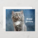 Postal Foto de cumpleaños de gatito gris y blanco lindo