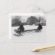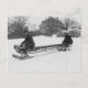 Postal con foto vintage de dos hombres en bobinadas bajando colina nevada en la parte delantera y texto de marcador en la parte trasera para personalizar.