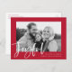 Desee a los amigos y a la familia unas vacaciones felices con nuestras tarjetas postales de fotos con estilo Joyful Script. La moderna postal navideña incluye la palabra Joyful en un guión blanco con letras a mano sobre el que está tu foto favorita enmarcada en rojo. Personalice la tarjeta postal agregando sus nombres, dirección de retorno y un saludo de personalizado.