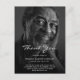 Tarjeta postal de agradecimiento por condolencias de funeral personalizada con superposición negra y espacio para una foto.