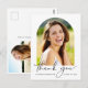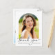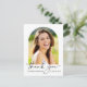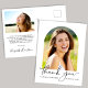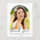 Tarjeta de agradecimiento de graduación moderna con la foto del graduado en un marco de arco, "gracias" en una elegante letra cursiva y su nombre y año de graduación en tipografía simple. En el reverso, agregue una foto adicional, personalice un mensaje de agradecimiento y agregue su nombre en una letra cursiva como una firma.