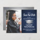 Comparte la alegre noticia de una fiesta de graduación con la foto personalizado azul marino y Relieve metalizado falso plateado, salva las invitaciones de postales de fecha. La imagen y la redacción de esta plantilla son fáciles de personalizar y los colores pueden cambiarse con la herramienta de diseño de Zazzle. Personalizar con el nombre del graduado, el año de clase y otros detalles de invitación de su elección. El diseño presenta un fondo metálico falso de color rojo, una tapa falsa de la placa de mortero de Relieve metalizado, una caligrafía moderna y elegante, una tipografía vintage clásica y una foto favorita, como una foto de la tercera categoría o una imagen de la ceremonia de graduación. Tenga en cuenta que la plata es de color gris oscuro impreso, no de Relieve metalizado metálico. Estas elegantes tarjetas de graduación son una manera elegante de compartir una celebración especial del día con la familia y amigos. ¡Felicitaciones al graduado!
