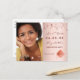 En el frente: Agregue su propia foto vertical del graduado. Un fondo metálico de color rosa dorado y rubor, decorado con estrellas. Personalice y agregue un nombre y fecha. El nombre y el texto: Save the Date están escritos con un estilo de letra manuscrita moderna.