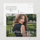 Di gracias con esta tarjeta postal con tu foto en la parte frontal junto con gracias en letras blancas elegantes, tu nombre y año de graduación. Tu nota de agradecimiento personalizada en el reverso o si prefieres escribir a mano tu nota, simplemente elimina el texto para hacer espacio para tu mensaje. MÁS diseños en nuestra tienda.