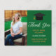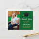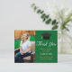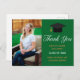 Una clásica tarjeta postal de agradecimiento de graduación con fotografía personalizada en verde y dorado para la escuela secundaria, universidad o instituto de la promoción de 2025. Personalice con el nombre de su escuela y la clase de graduación bajo la encantadora caligrafía para una tarjeta postal de agradecimiento de graduado personalizada y elegante con su retrato de último año.