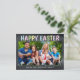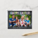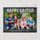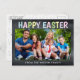 Foto moderna de postal de Pascua. El diseño presenta el guión de tipografía colorida ''Pascua feliz'' en tonos pastel de primavera , foto familiar y línea única con un nombre familiar en el fondo de textura de pizarra. Personalice más con su mensaje en la parte posterior.