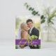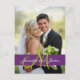 Foto De La Boda Morada De Damasco Gracias Postcard. Reemplace la foto de ejemplo con su propia fotografía boda, añada monograma y nombres y el texto de agradecimiento de su boda.