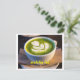 Foto de una taza de té verde matcha con un diseño en la parte superior.