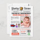Tarjeta de invitación personalizable para fiesta de cumpleaños con temática de superhéroes de arte pop de periódico.