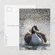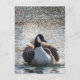 Foto de la naturaleza de un ganso canadiense silvestre bañándose en un lago con luz solar brillante. Foto © Sebastian Worm.