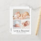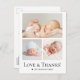 Expresar gratitud con estilo con el amor simple y gracias tipografía Photo Grid ducha bebé gracias postal! Con un diseño limpio y una distribución de rejilla de fotos, esta tarjeta de personalizable es perfecta para mostrar los momentos adorables de su pequeño, mientras da las gracias a amigos y familiares. Una manera sincera y moderna de compartir su aprecio. Tres fotos en el frente en un estilo limpio y fresco con el nombre del bebé y estadísticas de nacimiento. Icono de detalles del corazón. ©lddesignloft Póngase en contacto con info@lddesignloft.com si necesita ayuda con esta plantilla. Una forma maravillosa de agradecer a los bebés que duchan una vez que nace el bebé.