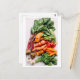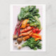 Esta postal contiene una foto de verduras, incluyendo zanahorias, remolachas, rábanos y ajo.