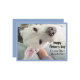 Esta adorable postal cuenta con Olive, una linda mezcla de labradores que disfruta de pasar tiempo con su padre. Es una tarjeta dulce para los amantes del perro y para el Día del Padre.