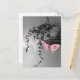 Ahorra en tasas de envío y un sobre cuando envíes una postal con esta fotografía de naturaleza muerta con salpicaduras de color sombrío. El elemento monocromo de la fotografía muestra una maceta de terracota en una estantería, hojas de plantas y pared. Las salpicaduras de color presentan flores de goldfish naranjas en la planta y una decoración de mariposa rosa y melocotón que cuelga de la estantería. Haz clic en personalizar para agregar texto en la parte delantera o trasera en un estilo de letra, tamaño y color que prefieras. Mucho espacio en la parte trasera para un mensaje y direcciones. Fotografía ©Patricia AZ Phillips