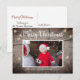 Postal Foto de Navidad con Textura de Madera Rústica y Lu