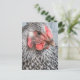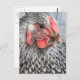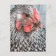 Este es un pullet Wyandotte muy joven de color plateado, o gallina ponedora. Este pollo en particular tiene un magnífico peine y batas rojas brillantes que se muestran agradablemente al lado de las hermosas plumas blancas de color negro. Una fotografía de color muy detallada, nítida y vibrante muestra el acercamiento del pájaro. Perfecto para los criadores de pollos.