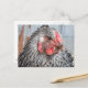 Este es un pullet Wyandotte muy joven de color plateado, o gallina ponedora. Este pollo en particular tiene un magnífico peine y batas rojas brillantes que se muestran agradablemente al lado de las hermosas plumas blancas de color negro. Una fotografía de color muy detallada, nítida y vibrante muestra el acercamiento del pájaro. Perfecto para los criadores de pollos.