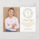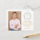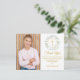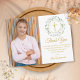 Una guirnalda de laurel decorativa, anillos de oro y un crucifijo se sientan sobre tu mensaje especial de agradecimiento de primera comunión y al lado de tu propia foto en este elegante diseño. Diseñado por Thisisnotme©