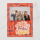 Tarjeta de felicitación navideña que presenta una hermosa frase festiva de caligrafía manuscrita "agradecido agradecida bendito" sobre un fondo ondulado y una foto de su elección. Personalice esta tarjeta de felicitación con su nombre y año.