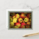 Una preciosa fotografía de un montón de manzanas frescas. Las manzanas están madurando y mostrando sus colores amarillo y rojo. Productos frescos de otoño. Los bordes tienen un efecto de sombra mientras que el centro es brillante.