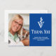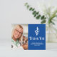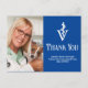 Tarjetas de agradecimiento personalizadas de graduación de la escuela de veterinaria azul con el caduceo médico veterinario junto a la foto de su graduado. Personalice estas tarjetas de agradecimiento con elegante letra blanca junto a su fotografía para su clínica veterinaria.