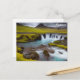¡A cualquiera le encantaría recibir esta postal de viaje con una hermosa foto de una cascada y montañas en Islandia!