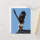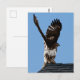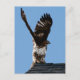 Esta tarjeta postal presenta una increíble foto de vida silvestre de un halcón de cola roja posado en el vértice de un techo con sus alas levantadas muy por encima de su cabeza preparándose para despegar. Al fondo hay un cielo azul claro. Ideal para un entusiasta de las aves o las rapaces.
