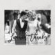 Novia y novio con pinceladas modernas, tarjeta de agradecimiento de boda Foto en blanco y negro de amor y gracias