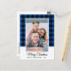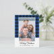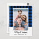 Una hermosa manta azul de búfalo - postal de vacaciones de tartán con el guión de caligrafía "Feliz Navidad", su nombre familiar, año u otro texto y la foto de su familia. Personalice su mensaje en la parte posterior de la tarjeta para que tenga el toque perfecto.