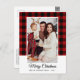Una hermosa manta de búfalo rojo - postal de vacaciones tardías con el guión de caligrafía "Feliz Navidad", su nombre familiar, año u otro texto y la foto de su familia. Personalice su mensaje en la parte posterior de la tarjeta para que tenga el toque perfecto.