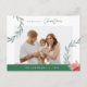 Merecidos Navidades. Celebra la temporada con esta postal familiar. Es totalmente personalizable y personalizada con tus propios mensajes de bienvenida. Por favor, agregue su dirección de devolución para un envío por correo fácil. Es sencillo, sencillo, pero moderno, minimalista y festivo, con una acuarela de color verde salvia, eucaliptos botánicos y temática verde. Esta es la postal perfecta para enviar sus deseos de vacaciones.
