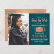 Comparte la alegre noticia de una fiesta de graduación con foto de personalizado verde azulada y un falso Relieve metalizado de cobre salva las invitaciones de postales de fecha. La imagen y la redacción de esta plantilla son fáciles de personalizar y los colores pueden cambiarse con la herramienta de diseño de Zazzle. Personalizar con el nombre del graduado, el año de clase y otros detalles de invitación de su elección. El diseño verde verde azulado incluye un gorro de tabla de mortero, caligrafía moderna y elegante, tipografía vintage clásica y una foto favorita, como una foto senior o una imagen de la ceremonia de inicio. Tenga en cuenta que el cobre es de color naranja silenciado, no Relieve metalizado metálico. Estas elegantes tarjetas de graduación son una manera elegante de compartir una celebración especial del día con la familia y amigos. ¡Felicitaciones al graduado!
